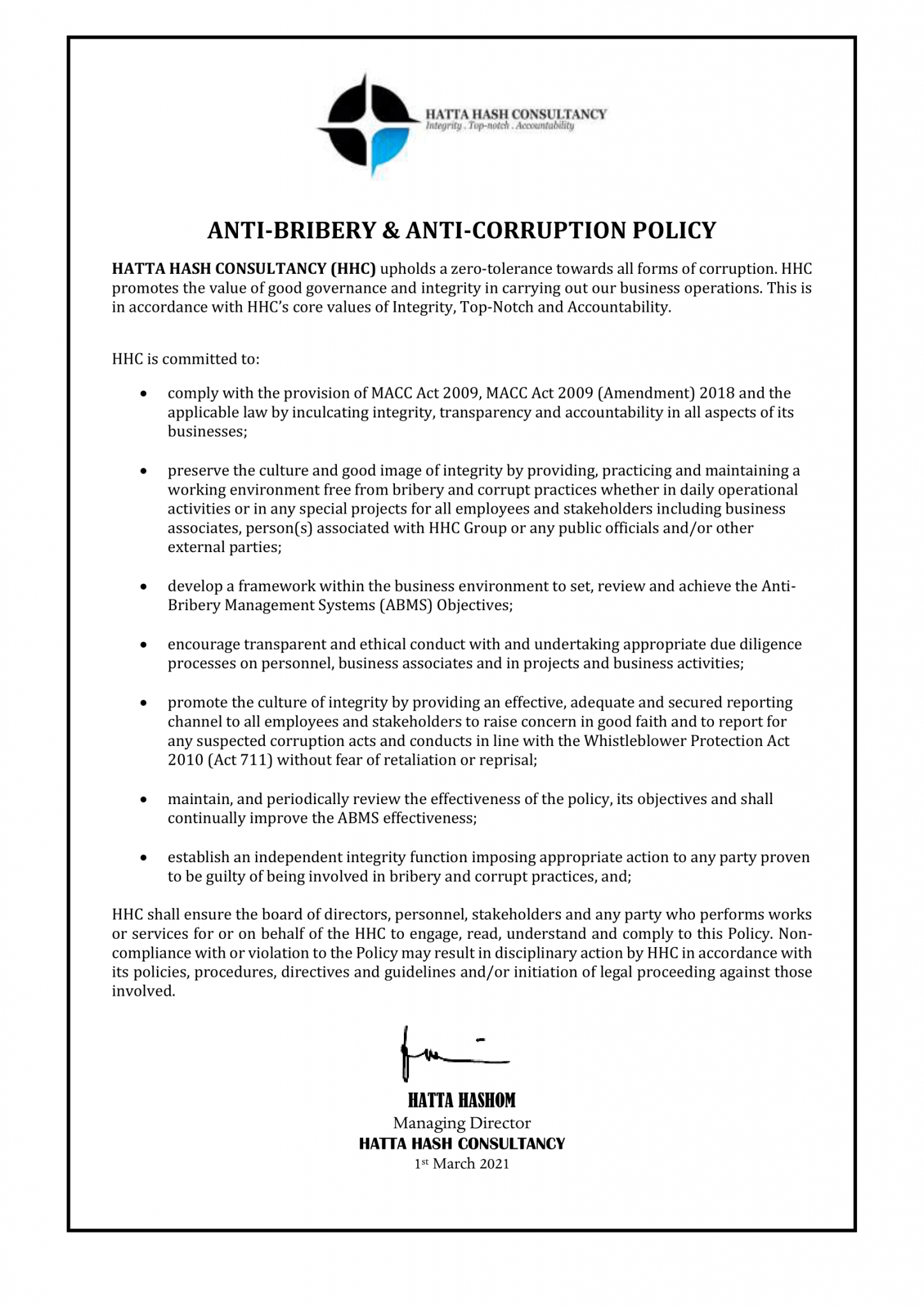 To be the Center of Excellence (CoE) for Anti-Bribery & Anti-Corruption Consultation and Prevention